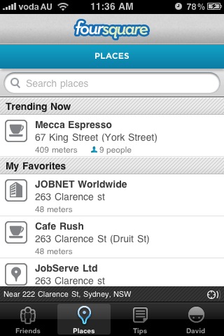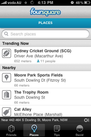 In order the judge the popularity of Foursquare amongst users in Sydney, Australia i ran a ‘tests’ at several locations in Sydney.